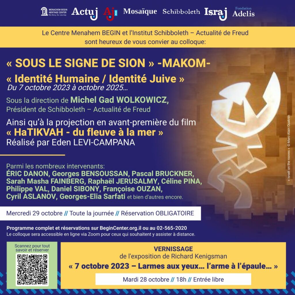 Le Mercredi 29 Octobre, le Centre Menahem Begin et l’Institut Schibboleth – Actualité de Freud ont organisé un Colloque « Sous le signe de Sion » Makom –Identité